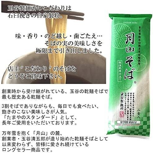 月山そば 玉谷製麺の始まりの「そば」。 自社の石臼でそばの実を挽き、挽いた挽きたて24時間以内のそば粉を使用。