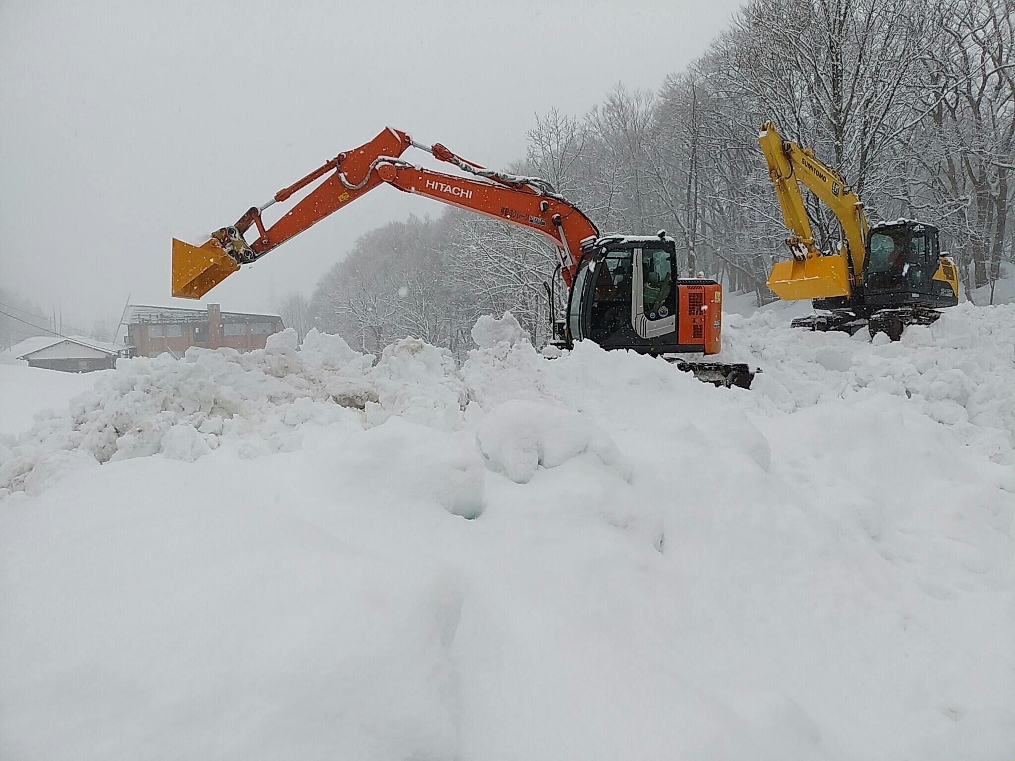 週末から、雪旅籠を制作する際に重要となる重機(バックフォー)が入りました。