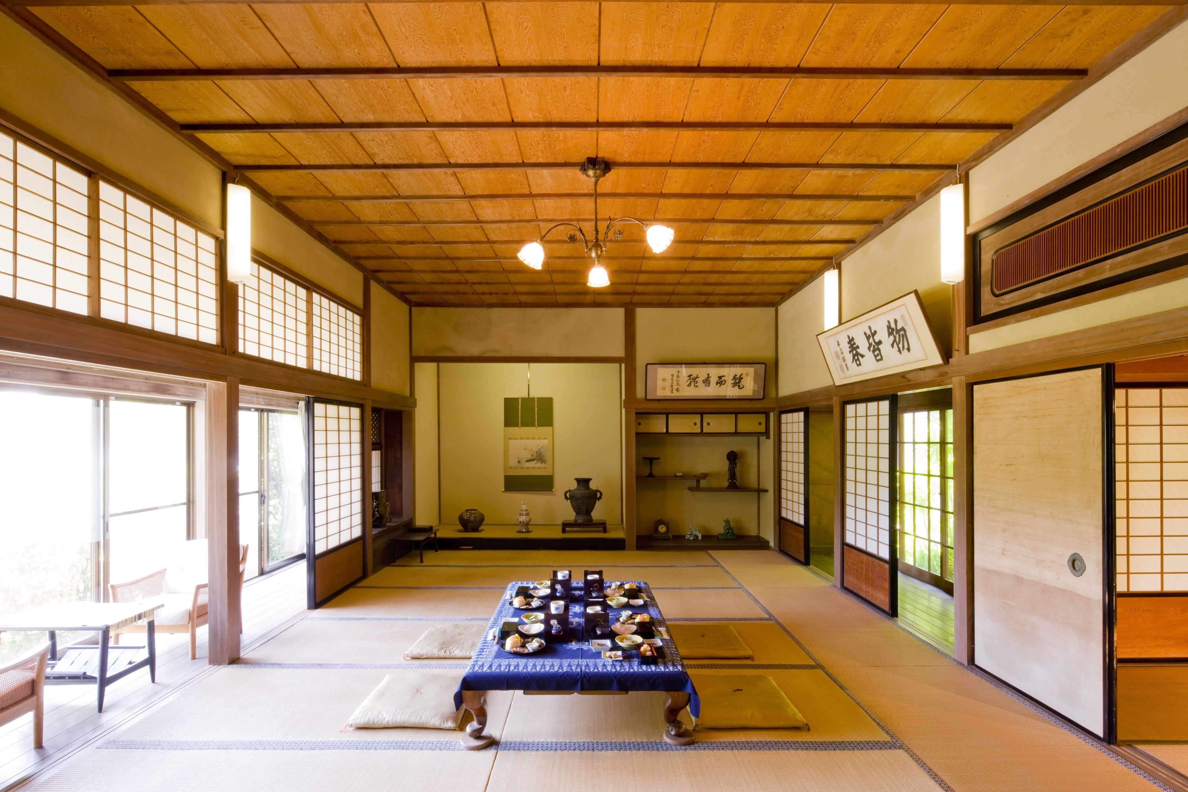 ぶり御殿内大広間・横山大観(帰漁)・西園寺侯爵書・平沼前総理書・薩摩焼香炉等調度品