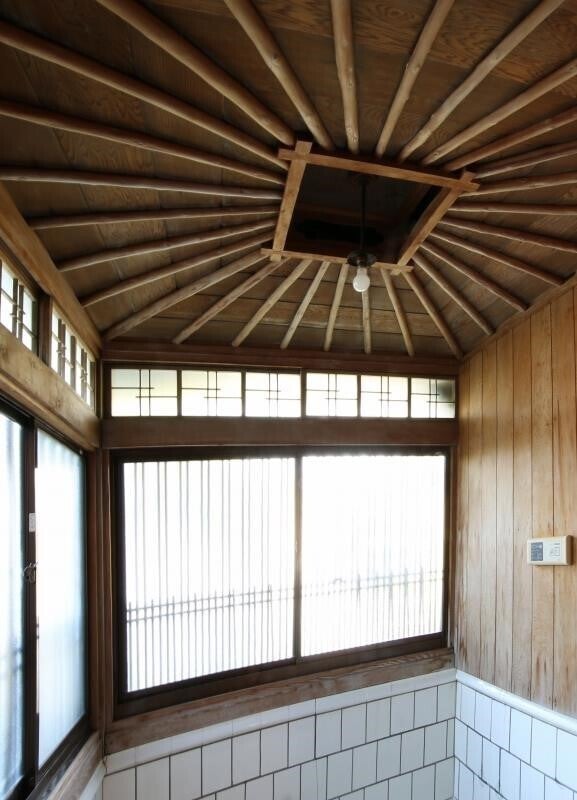 木造2階建て、金物を使用しない伝統的な工法で建てられた和風建築ですが、浴室の天井や階段の手摺、玄関のタイル張り等に当時の洋風建築の意匠が取り入れられていたりと、近代らしさも感じられるつくりとなっています。