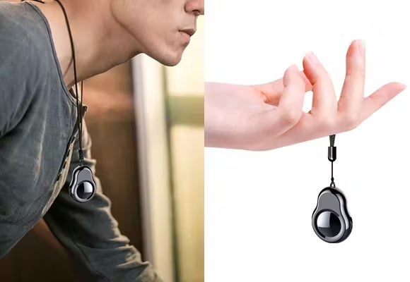 「X2」の上部にある穴にひもを通すと、オリジナルのペンダントやストラップになります。紛失しにくいだけでなく、コンパクトサイズなので相手への圧迫感を低減でき、自然なインタビューがしやすいのもポイントです。