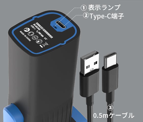「N88」は1300mAh大容量バッテリーを搭載しており、1時間連続使用することが可能です。時間がかかりそうな作業でも問題なし!さらに付属のUSB Type-Cケーブルで「N88」をスマホのように手軽に充電することができます