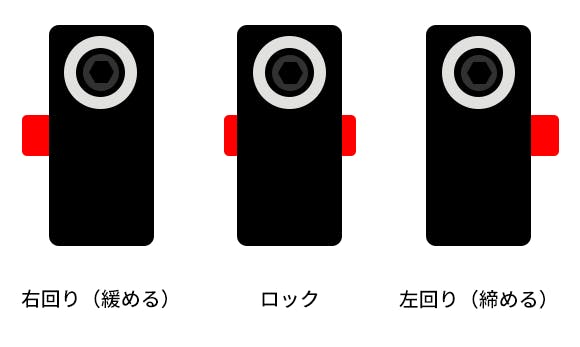 本体の側面にあるボタンを押すことで左回り・ロック・右回りを切り替えます。