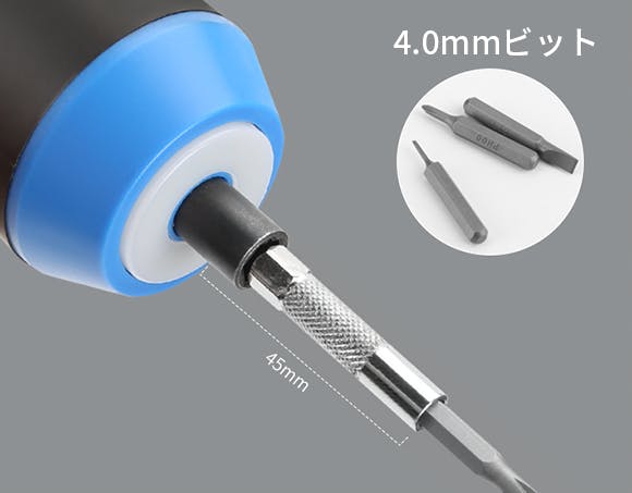 付属のニッケル製ビットアダプターを使えば、付属の6.35mmビットではなく自宅の4.0mmビットを使用することも可能になります。