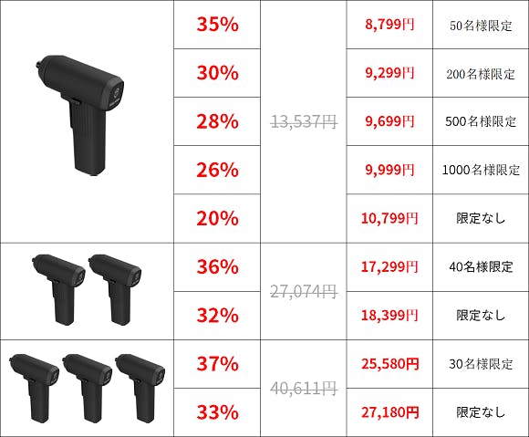 ※本プロジェクトを通して想定を上回る皆様からご支援を頂き、現在進めている環境から量産体制を更に整えることができた場合、正規販売価格が販売予定価格より下がる可能性もございます。
