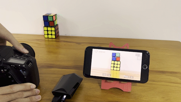「KIIKUU」を一眼レフカメラのHDMI出力端子に接続したら、撮影対象から距離を取ってカメラの映像をスマホで確認できます。他社のワイヤレス映像伝送システムよりずっと便利でコスパも抜群!