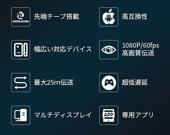 ・先端チープ搭載で超低遅延で最高1080P/60pの滑らかな高解像度画面を伝送することを実現!ゲームにも仕事にも最適!