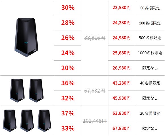 ※本プロジェクトを通して想定を上回る皆様からご支援を頂き、現在進めている環境から量産体制を更に整えることができた場合、正規販売価格が販売予定価格より下がる可能性もございます。
