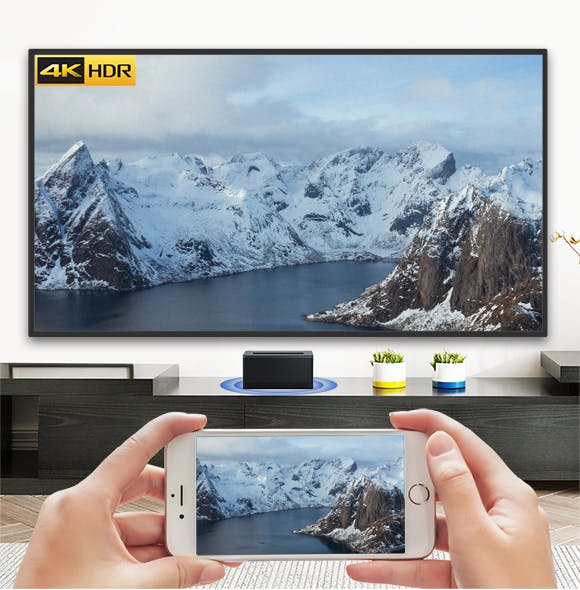 「X6」とスマートフォンを同じWi-Fiに接続することで、スマートフォンの画面をワイヤレスで投影することが可能です。「X6」のワイヤレス投影を使いスマホの画面を大スクリーンに映すことで、スマホで再生する動画や映画を一緒に楽しんだり、会議・授業でプレゼンすることができます。