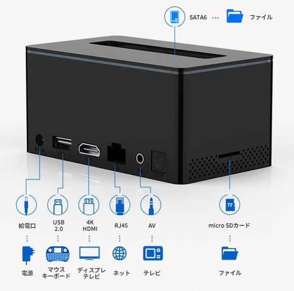 ※HDDのほか、USBメモリとmicro SDカードにも対応しております。