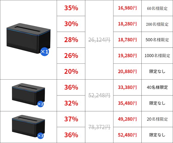 ※本プロジェクトを通して想定を上回る皆様からご支援を頂き、現在進めている環境から量産体制を更に整えることができた場合、正規販売価格が販売予定価格より下がる可能性もございます。