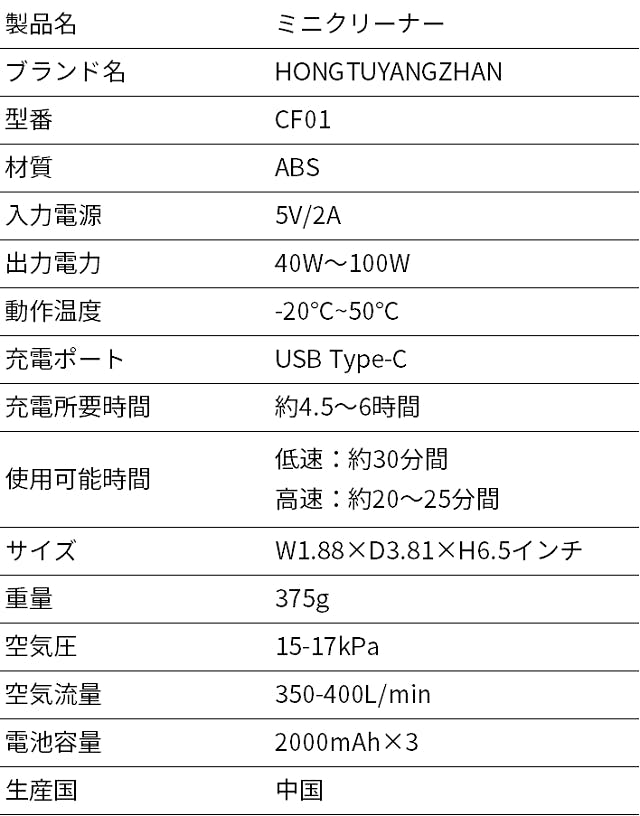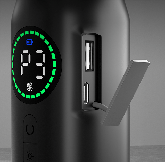 「CF01」には3段階の風速レベルが搭載されており、ボタンを1回押すたびに、本体側面のスクリーン画面の数字が変わり、風速が上がります。強力な内蔵モーターにより、最大空気圧は驚きの17kPa、最大空気流量は400L/minに達します。食べ物の屑、ホコリなどはもちろん、スマホまでも簡単に吸い上げられます!