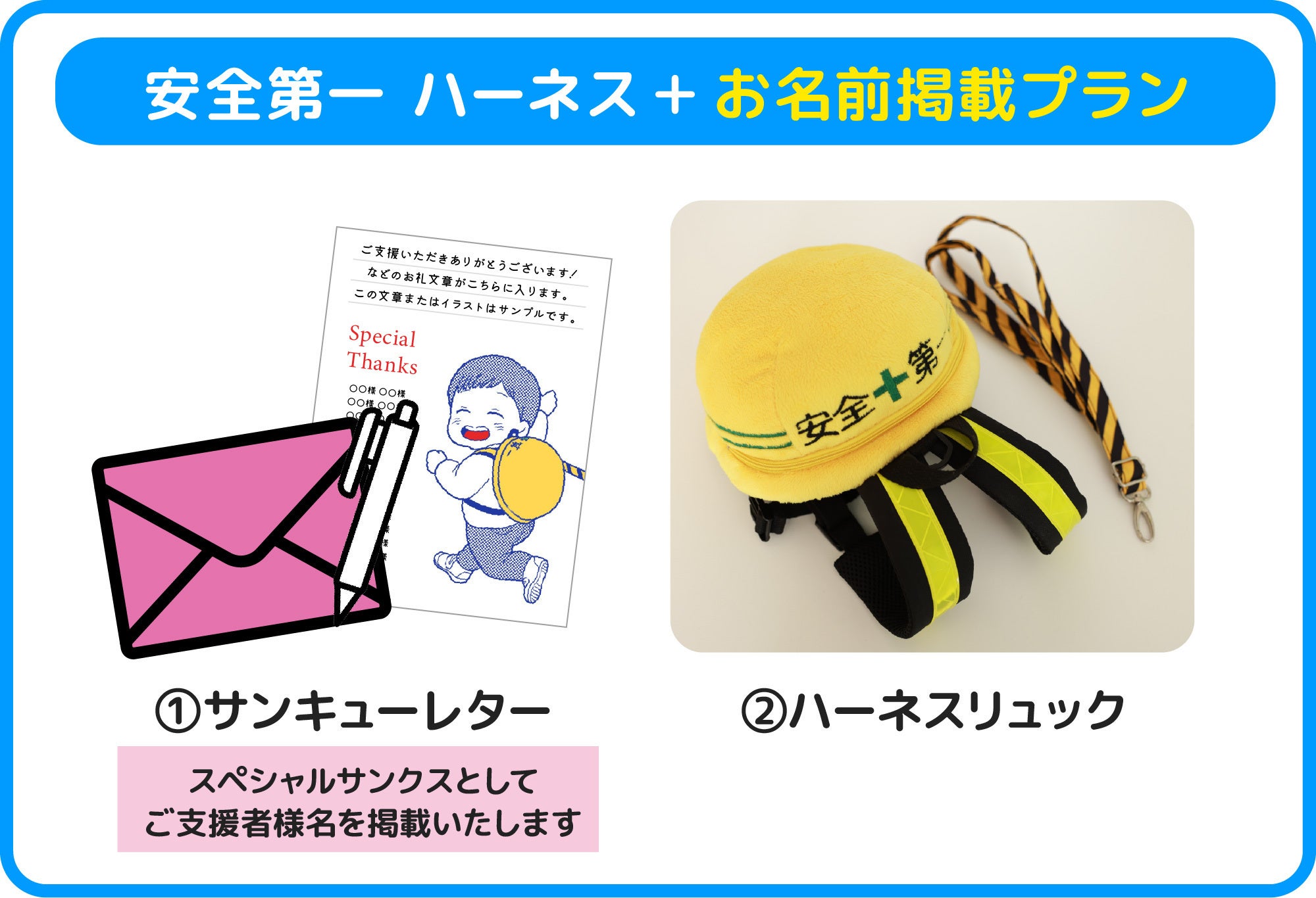 「ハーネスリュック」と「お名前掲載」がついているプランです。