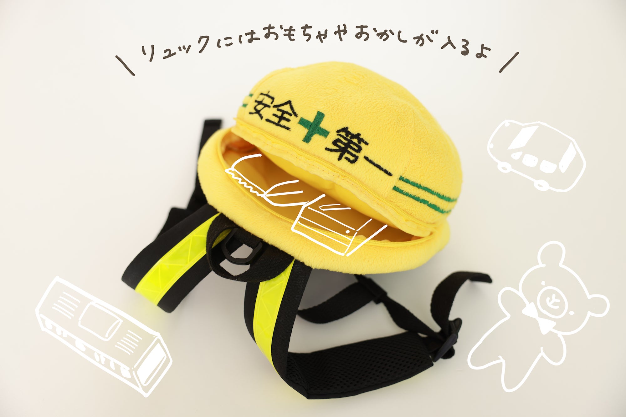 安全対策として使っていることが一目でわかるデザインの「子ども用ハーネス付きリュック」です。