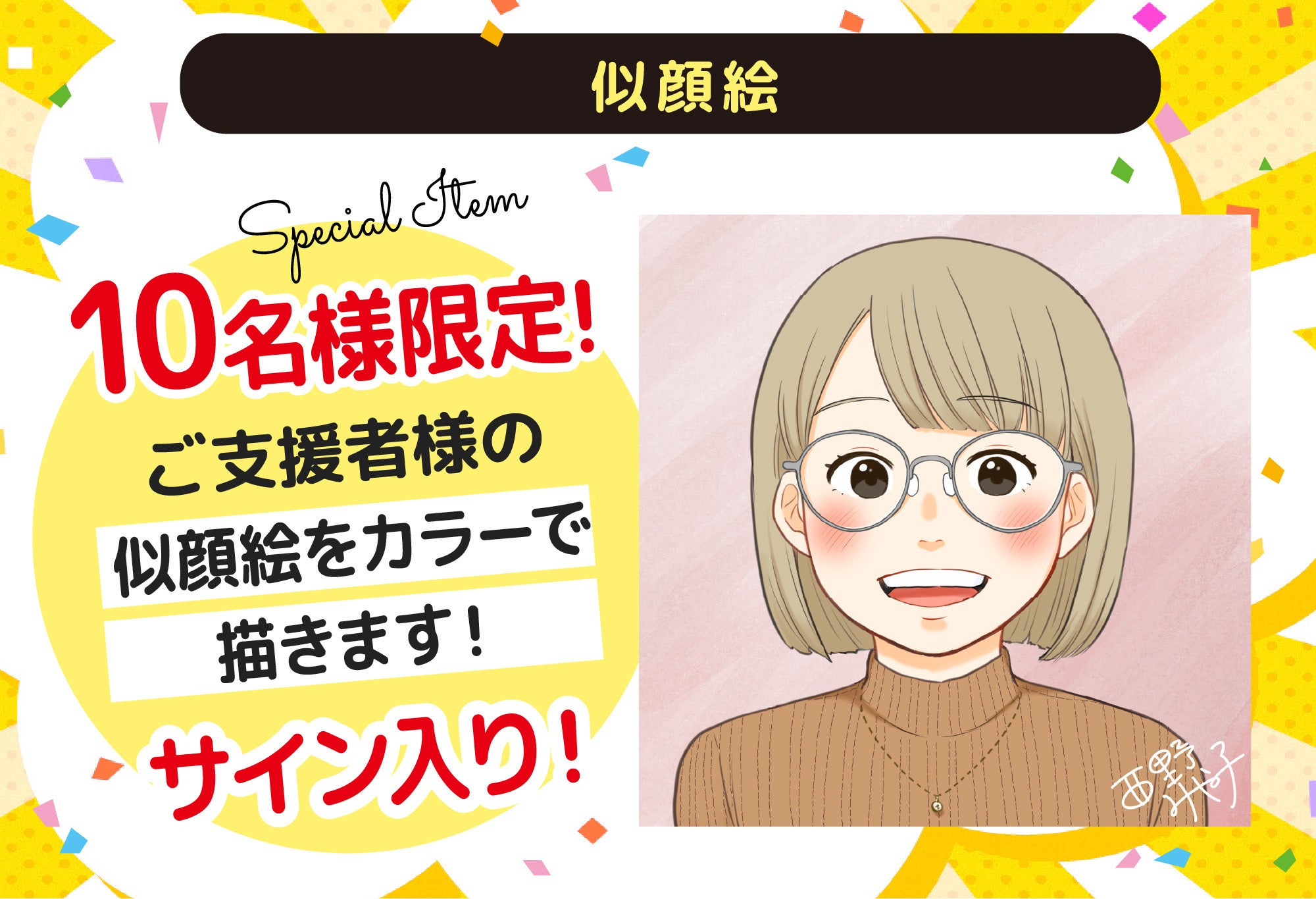 漫画家西野さんによる「似顔絵」がついたスペシャルなプランです。