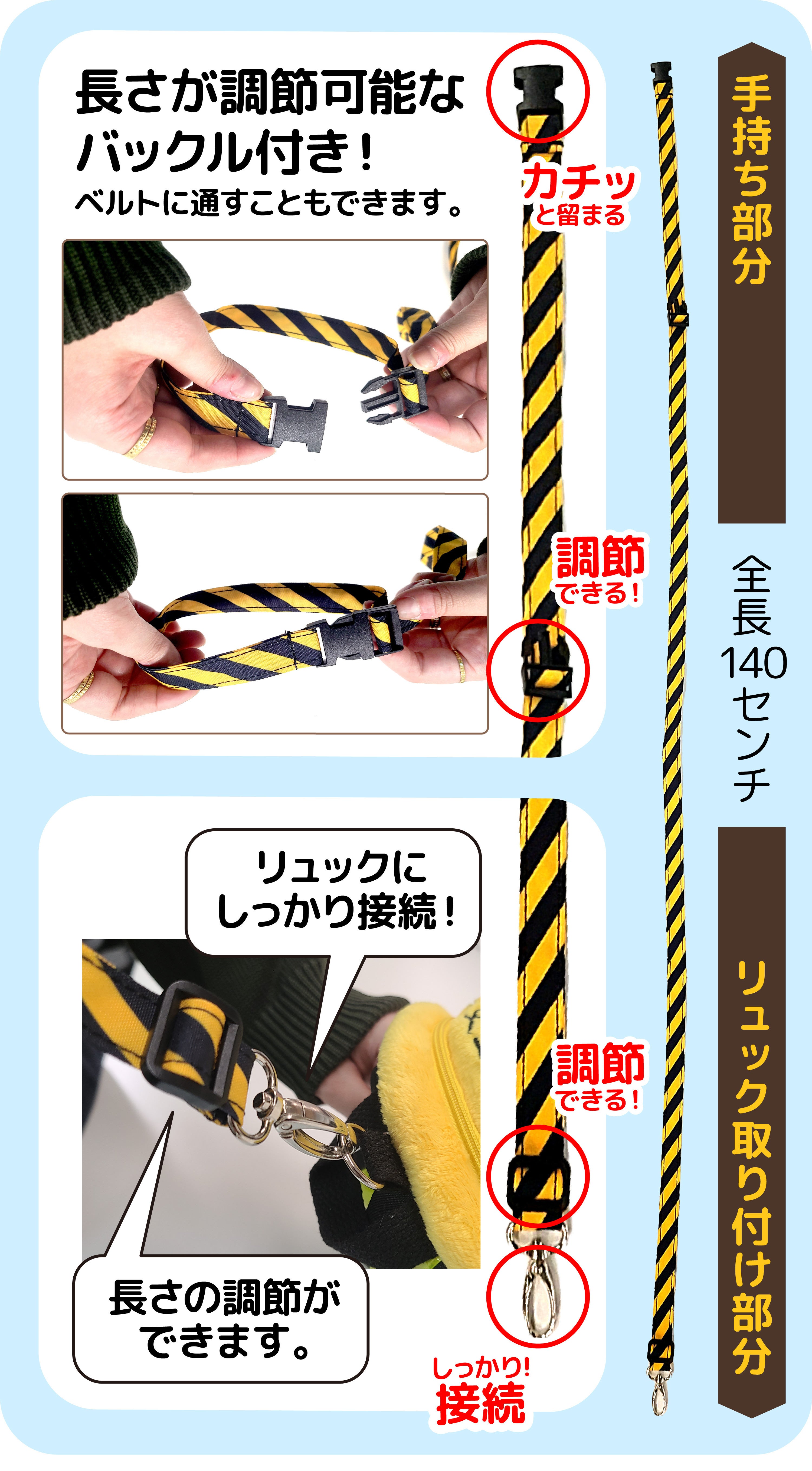 紐の長さや持ち手は調節が可能です。