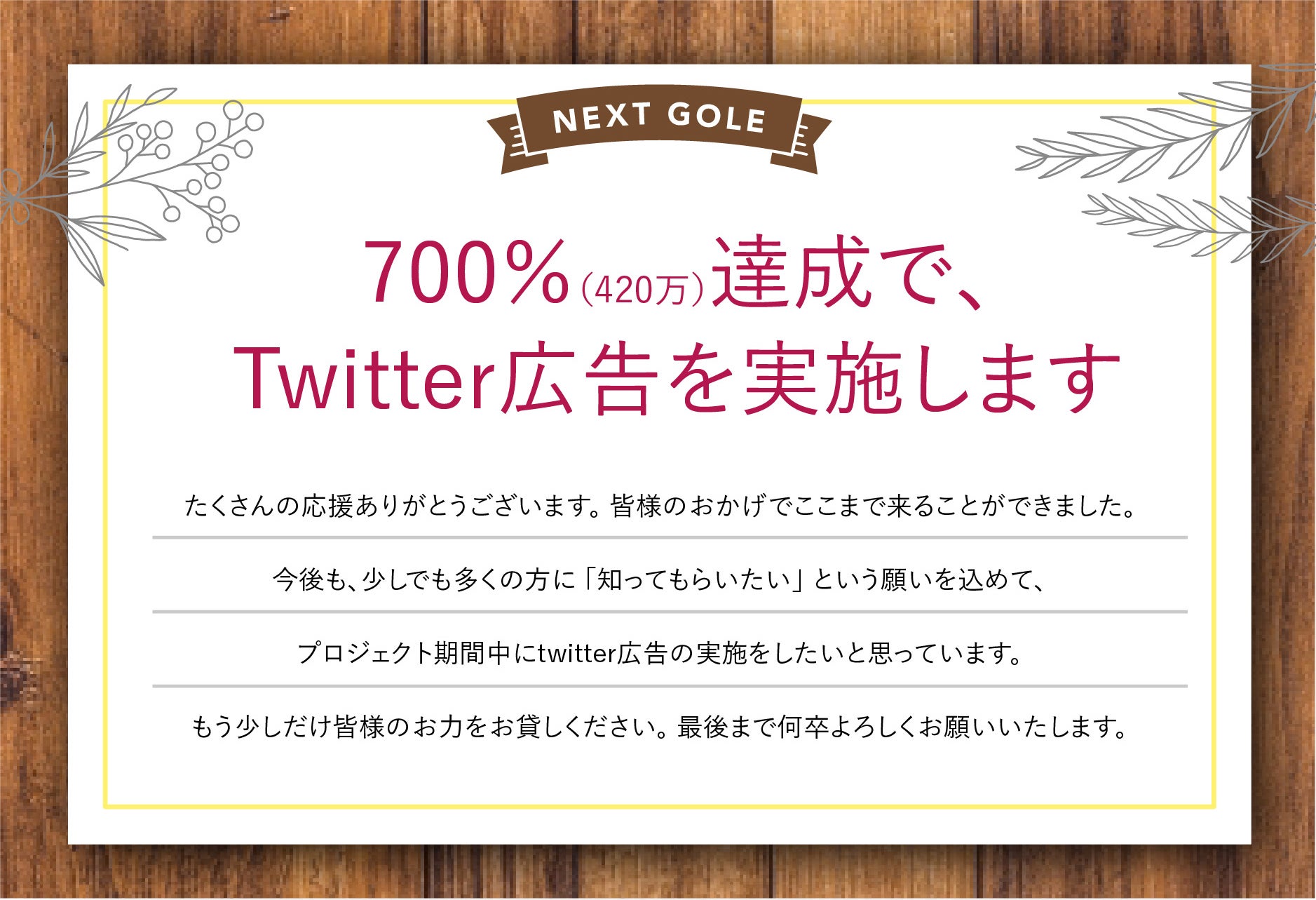 今よりもさらに多くの方にこの企画を知っていただく為に「twitter広告」を実施したいと思います。