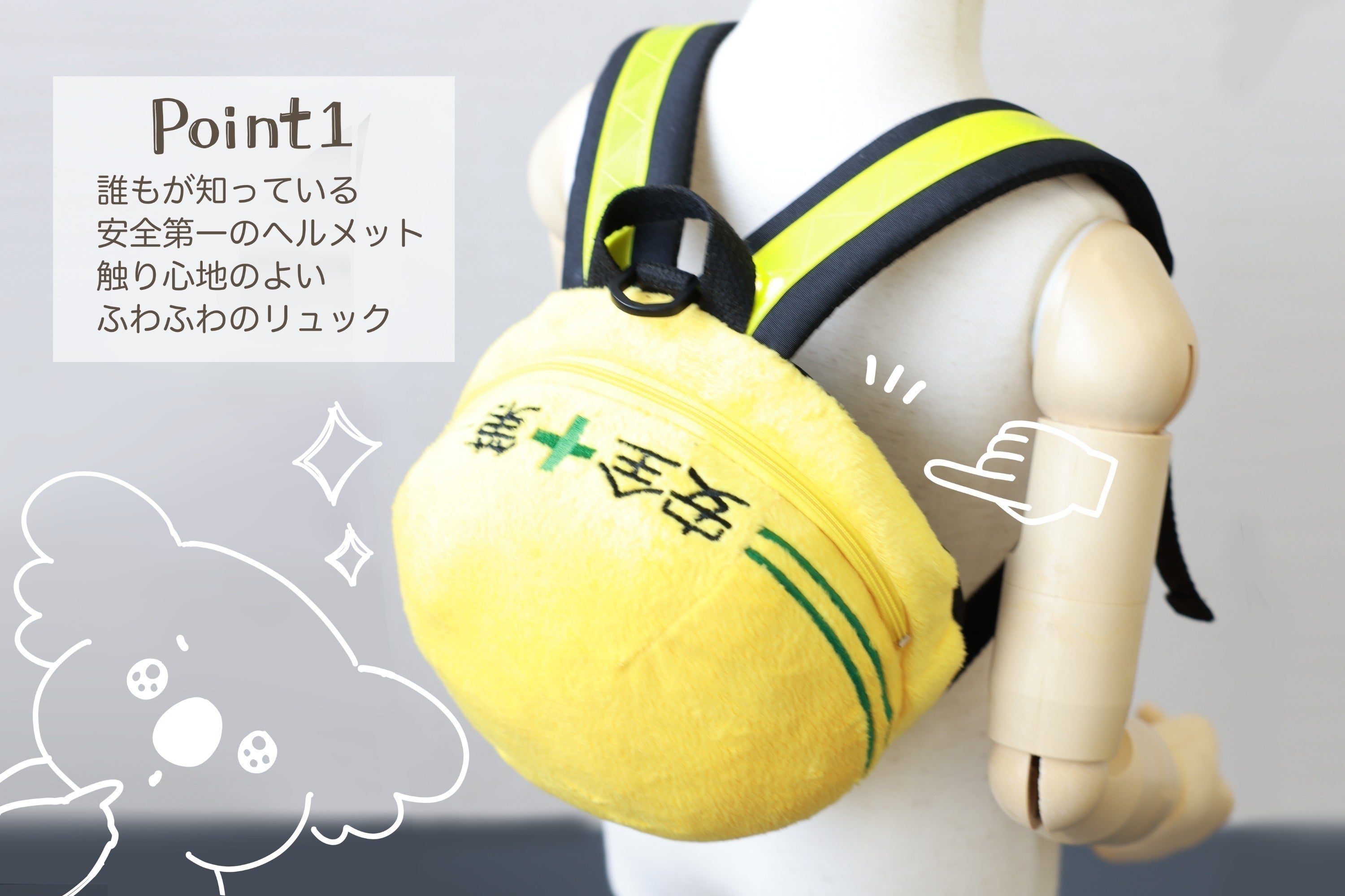 お子様が使うものなのでリュックはふわふわのぬいぐるみ生地を。