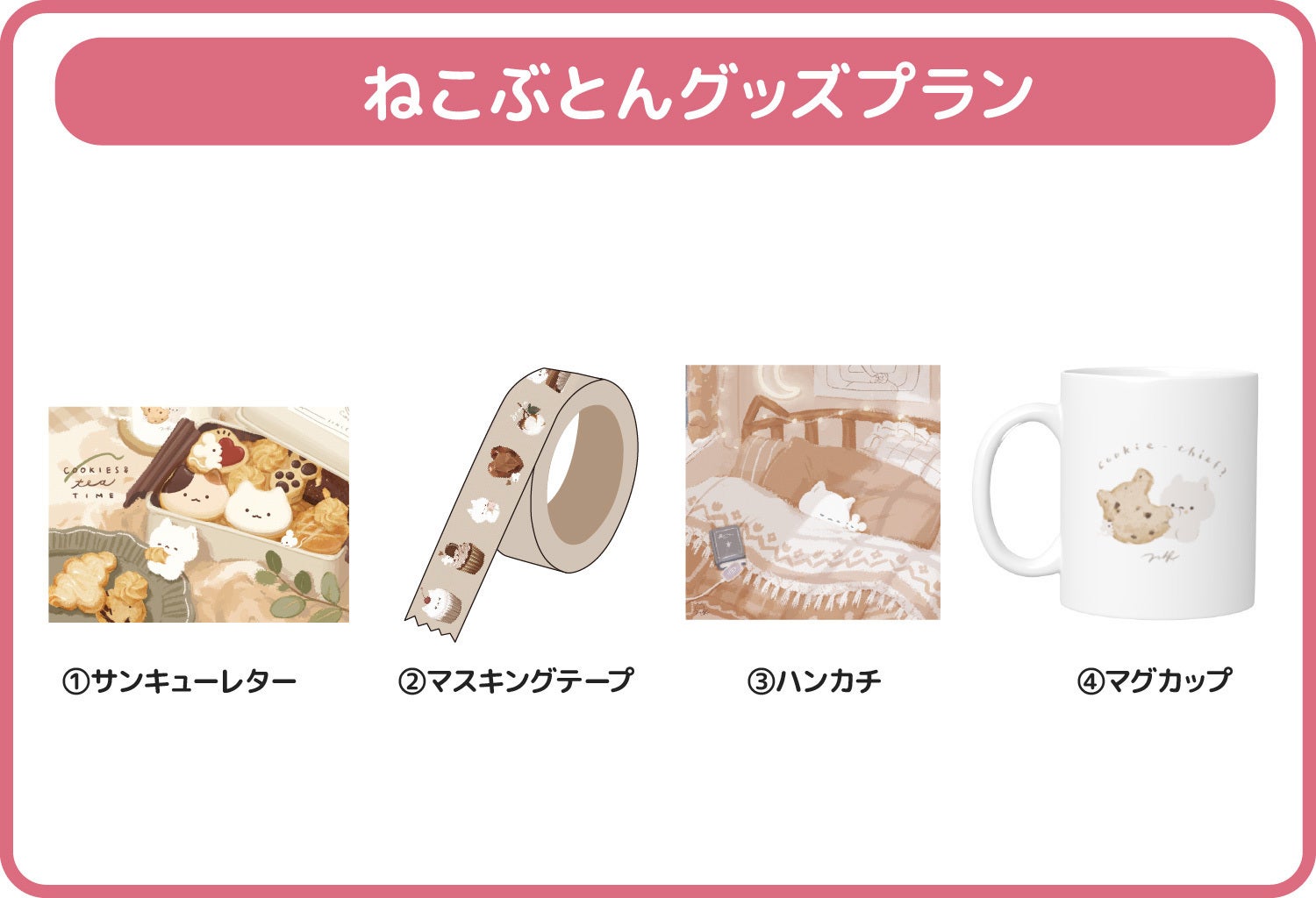 今回のために作ったグッズが全て揃うスペシャルプラン。クッキー缶と一緒に日常使えるアイテムです♪