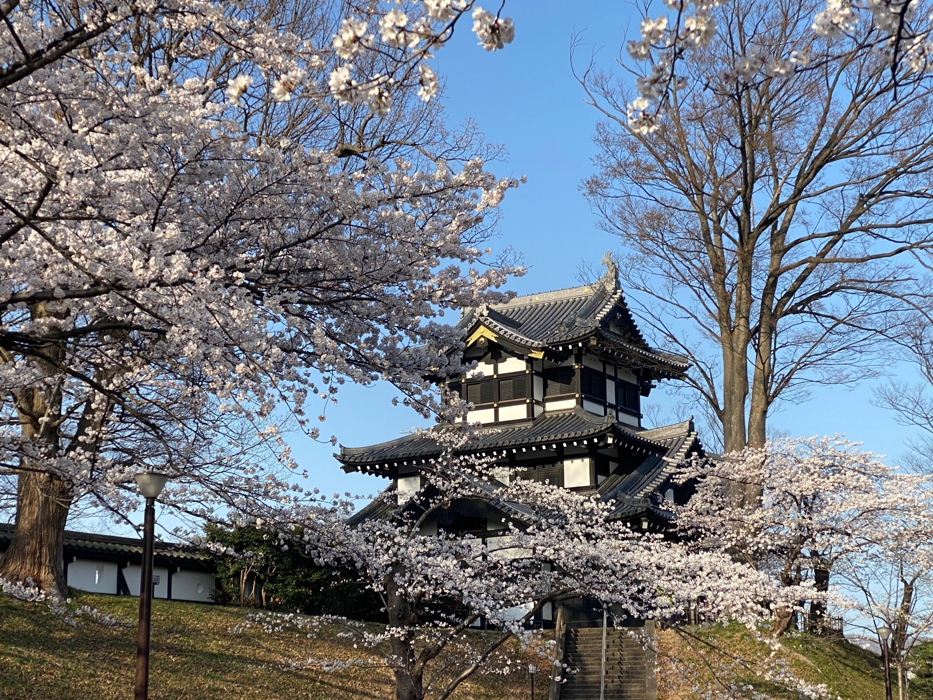 高田城周辺は高田城址公園となっており、約4000本の桜が咲き競い、観桜会では約3000個のぼんぼりに照らされます。その美しさは上野の恩賜公園、弘前城公園とともに日本三大夜桜の一つに数えられています。