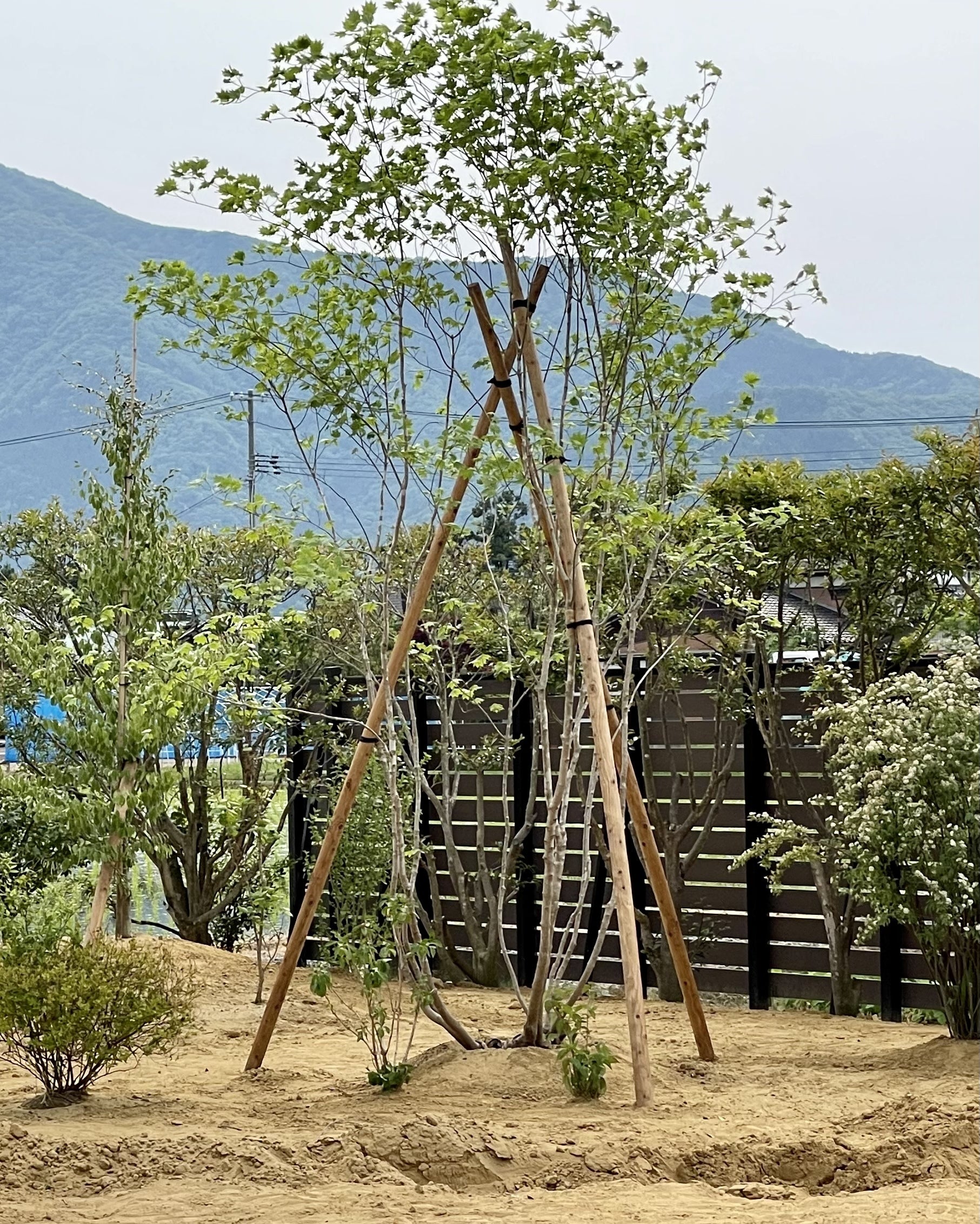 2023年春にオープンを予定しているコワーキングスペースのシェアガーデン内に、オーナープレート付きでシンボルツリーを植えられます。ご家族の記念植樹にもおすすめです。写真の樹木( ①アオハダ ②ヤマコウバシ ③アオダモ ④ハナミズキ ⑤ハウチワカエデ )からお好きな1本をお選びください。