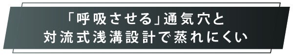 ③「呼吸させる」通気⽳と対流式浅溝設計で蒸れにくい