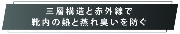 ④三層構造と⾚外線で靴内の熱と蒸れ臭いを防ぐ