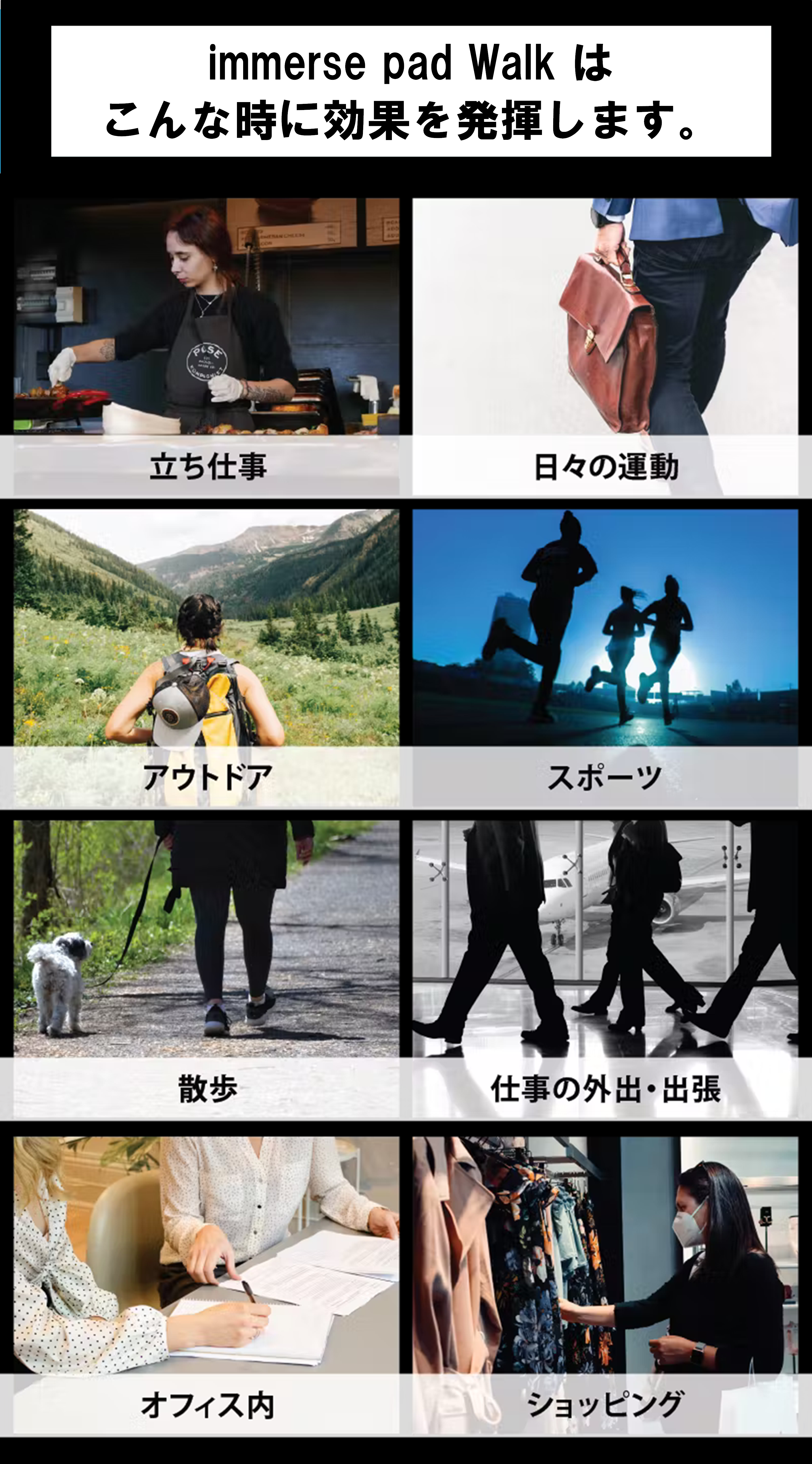 A) ⽴ち仕事から出張など外出、アウトドアやスポーツにもさまざまな場⾯で活躍します。