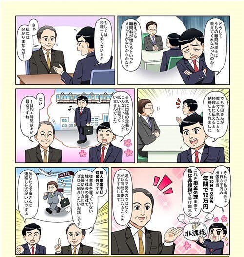 社内で作成している場合には、この出張日当が経費として扱われ、役員・社員は非課税で直接受け取れるため、会社と役員・社員の双方に節税効果があります。
