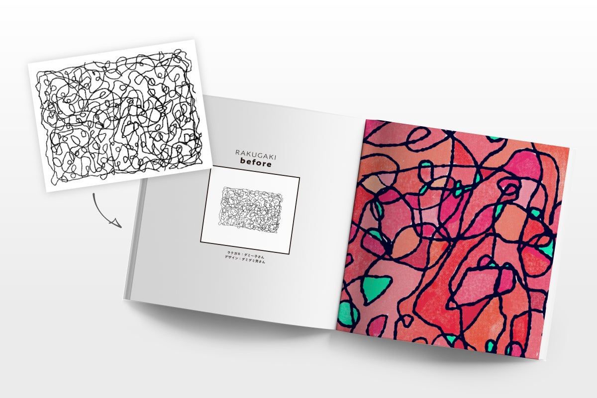 多種多様なラクガキアートを、これでもかと詰め込みます。デザイン前後で変化が分かるよう、ラクガキの原画も掲載。【ラクガキ×デザイン】が奏でる無限の可能性を、ご堪能あれ!