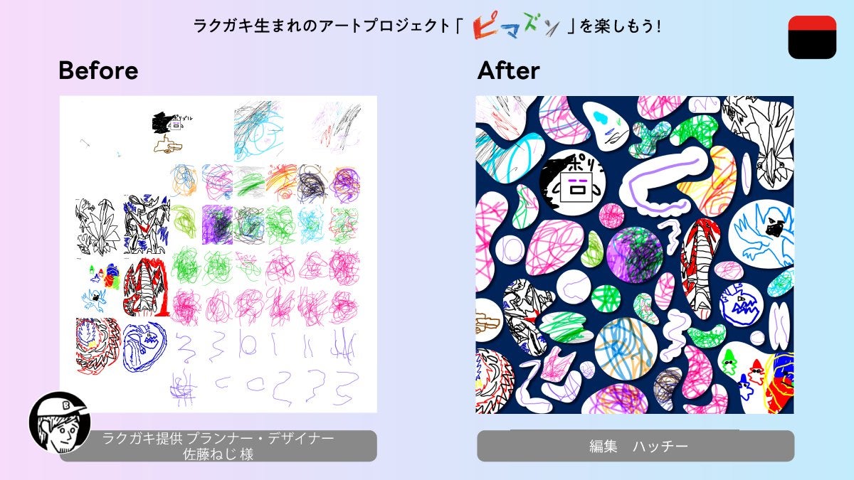 ハッチ―、サニーちゃん、アフさんの3名は、クラウドファンディングのリターン「選べるデザイナー!ピマズンを一緒に体験できる権」にも登場します。こちらのリターンでは、彼らプロのデザイナーにアドバイスを受けながら、一緒にラクガキアートを作ることができます。気になる方はぜひチェックを!