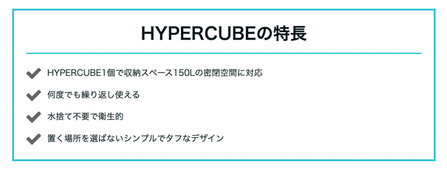 HYPERCUBE1個あたりで収納スペース150Lの空間に対応し、使い方は無限大!