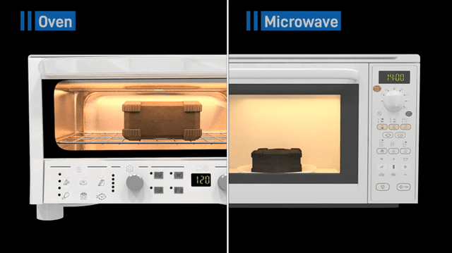 電子レンジ、またはオーブンで加熱すると中の水分が蒸発。