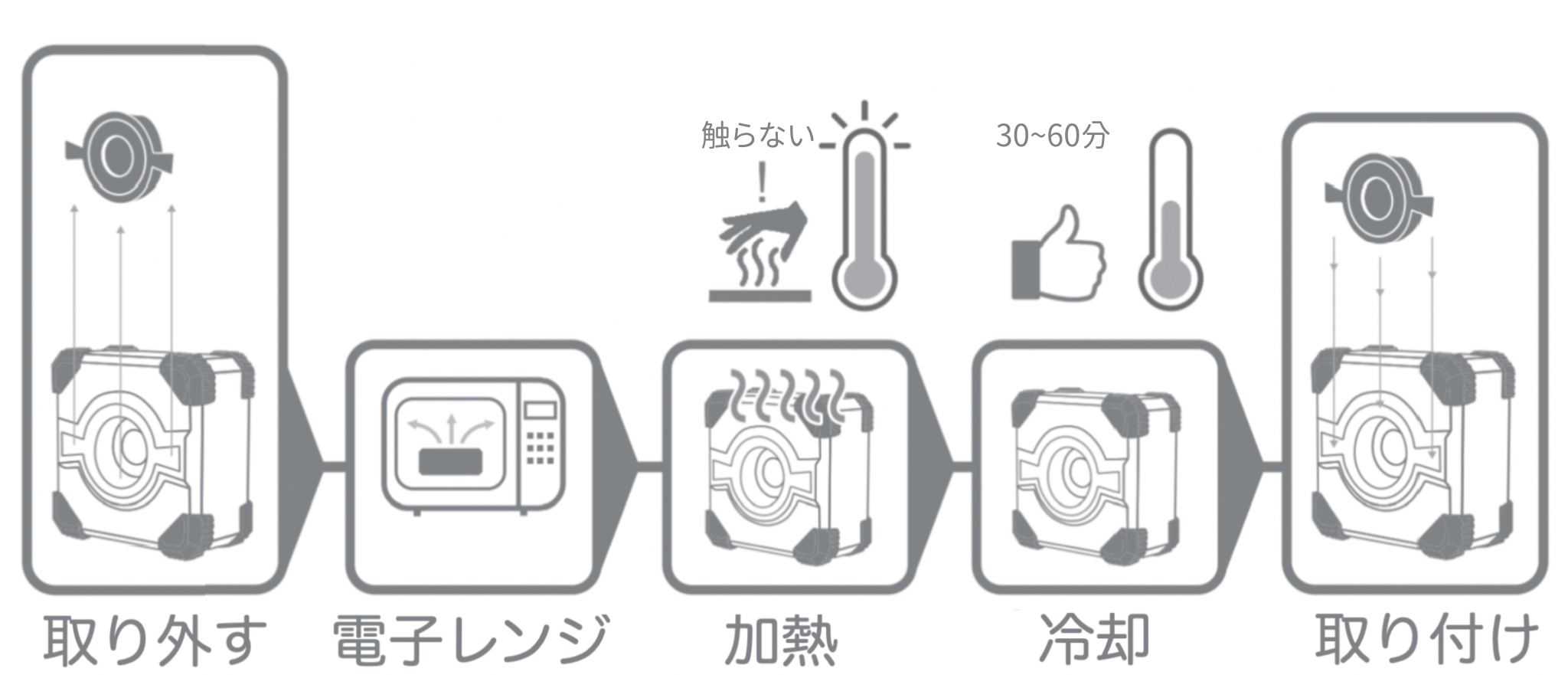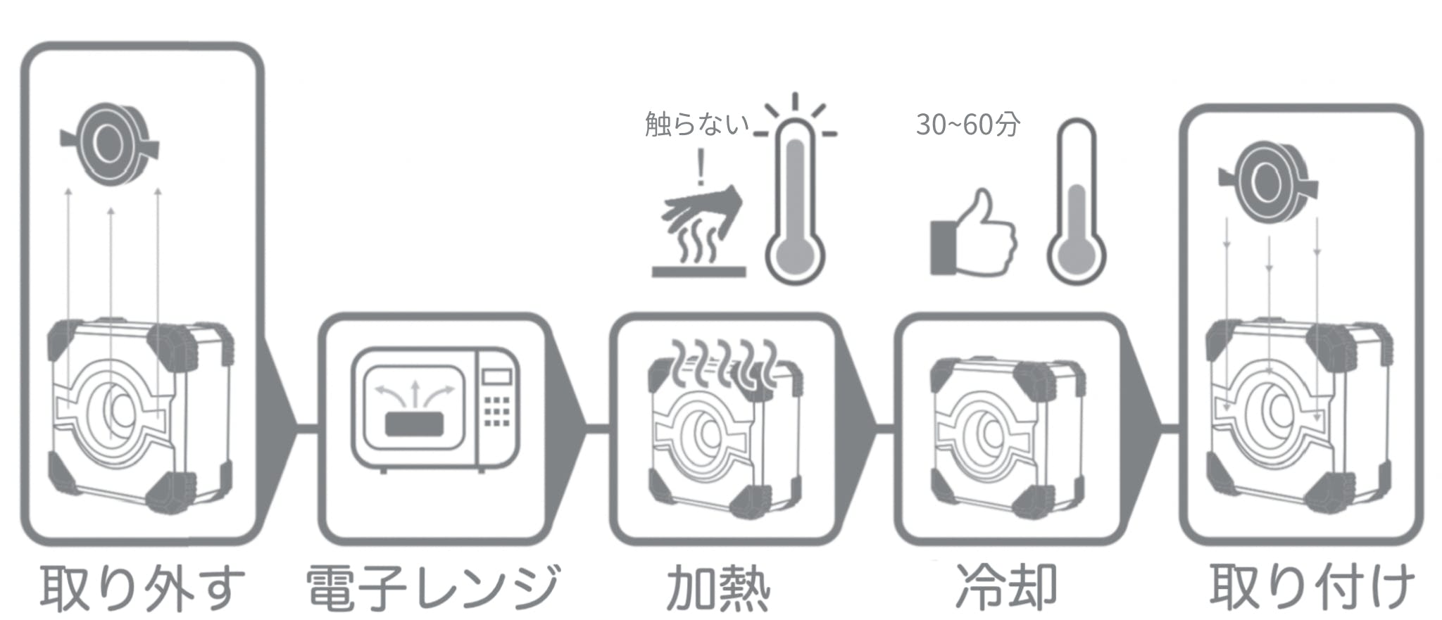 ★加熱中、ハイパーキューブは非常に高温になります。水分が加熱され、蒸発します。加熱後は、ハイパーキューブが完全に冷めるのを待ってから取り扱ってください。