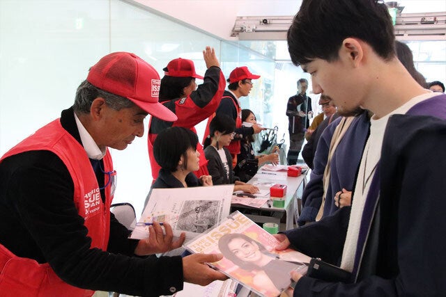 売上の半分が販売者さんの収入になる、というこの雑誌の内容自体がとても充実していたため、もっと多くの人にこの雑誌を知ってもらいたい、と雑誌代をチケット代に組み込む形での音楽イベント「りんりんふぇす」の開催を始めました。「りんりんふぇす実行委員会」は発起人の寺尾および「ビッグイシュー日本」「ビッグイシュー基金」のほか、困窮者支援に主に住まい確保とその後のケアの視点からとりくむ「つくろい東京ファンド」、路上の方への食糧や物資の支援に長年とりくむ仏教系ボランティア団体「ひとさじの会」、山谷で主に元日雇い労働者の方々の拠り所となり支援活動を行ってきた「山友会」など複数の団体スタッフにより構成されています。