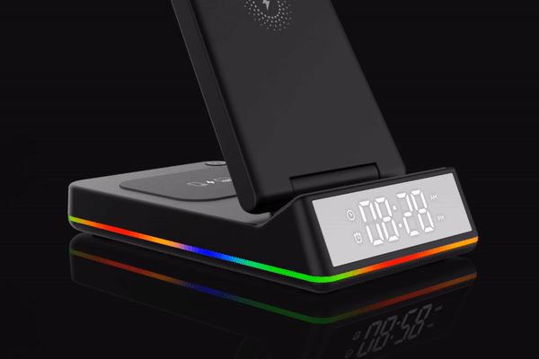 ※①~③はQi対応のワイヤレス充電です※時計:ボタン電池(CR2032)付属※ナイトライトの正常作動は2W必要です