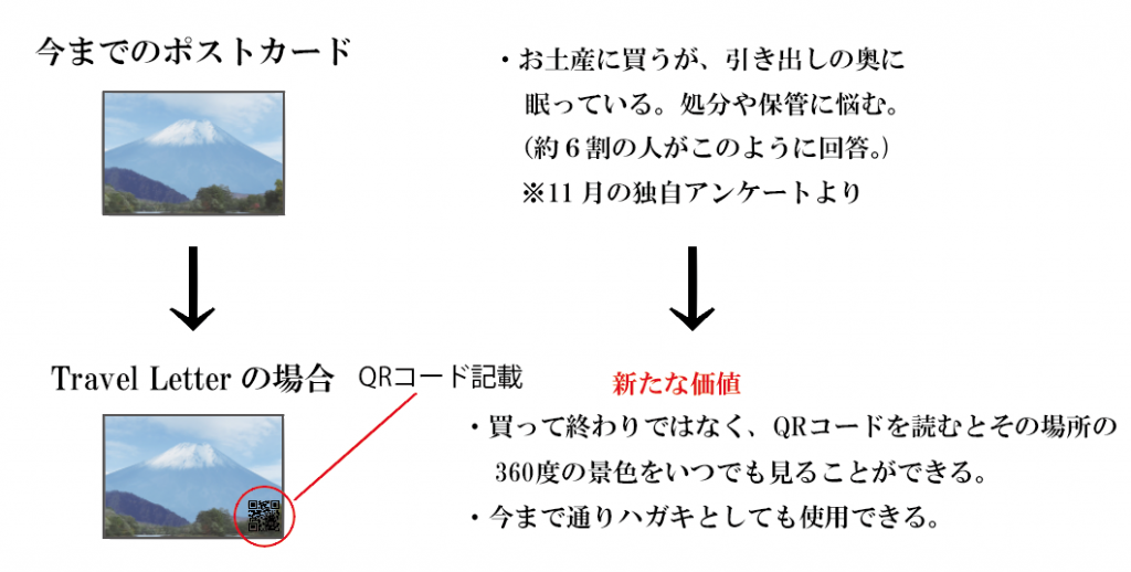 そこで私は新たにポストカードに価値を見いだしたいと感じ、提案するのがTravel Letterです。