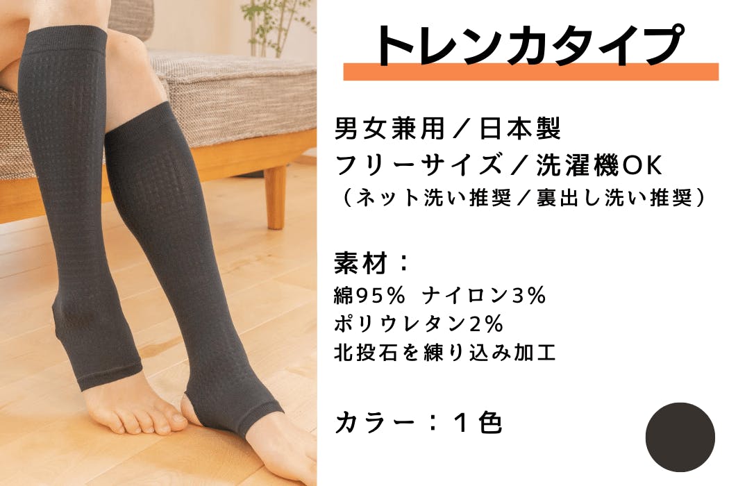 足までフォローしつつ、かかと部分が開いており、脱げにくいトレンカタイプ。