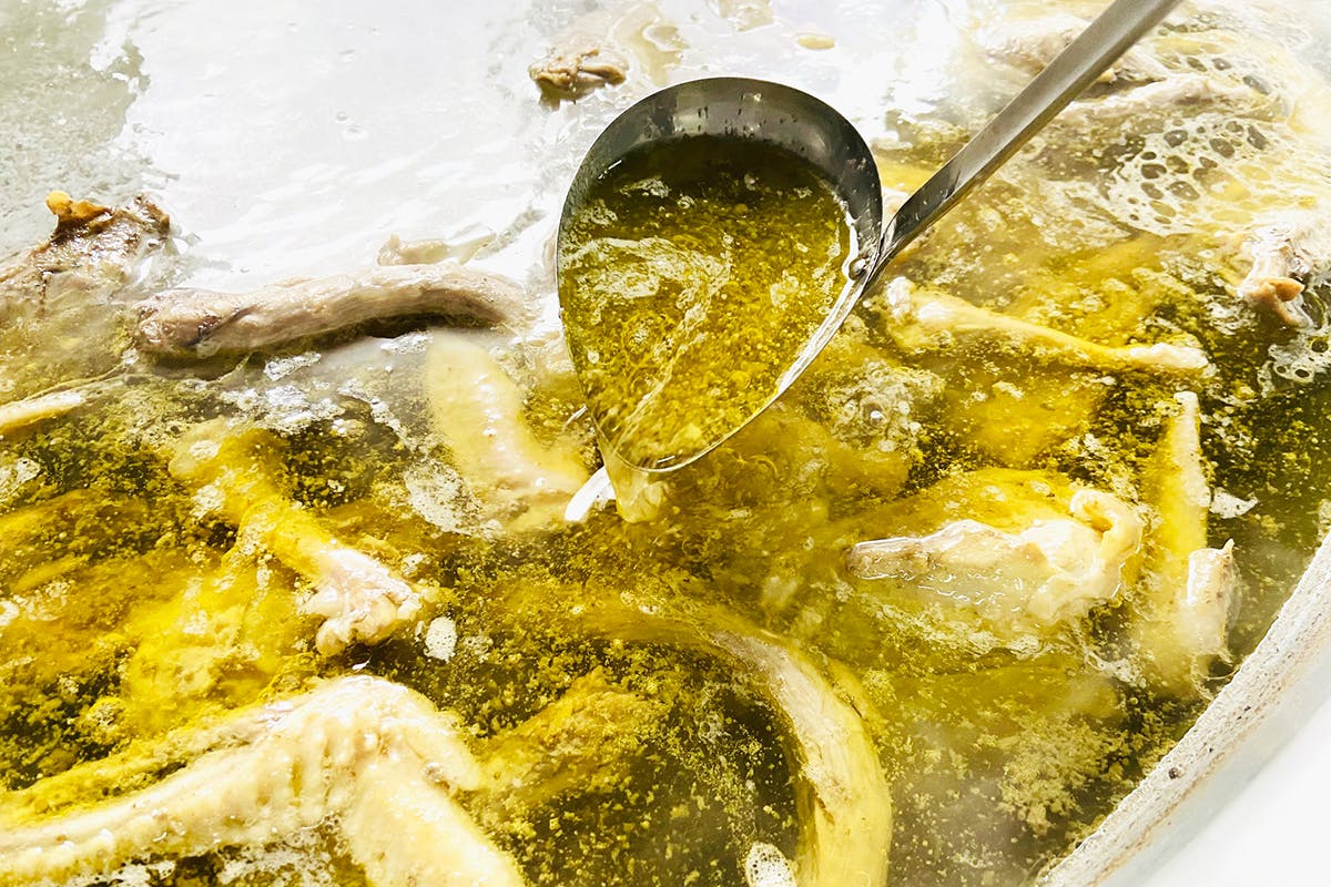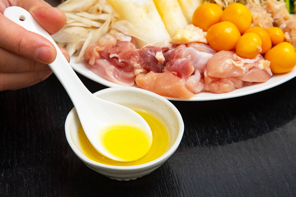 「この黄金色の比内地鶏の鶏油(ちーゆ)最高なんだよなぁ。たっぷり入れたいな・・・」