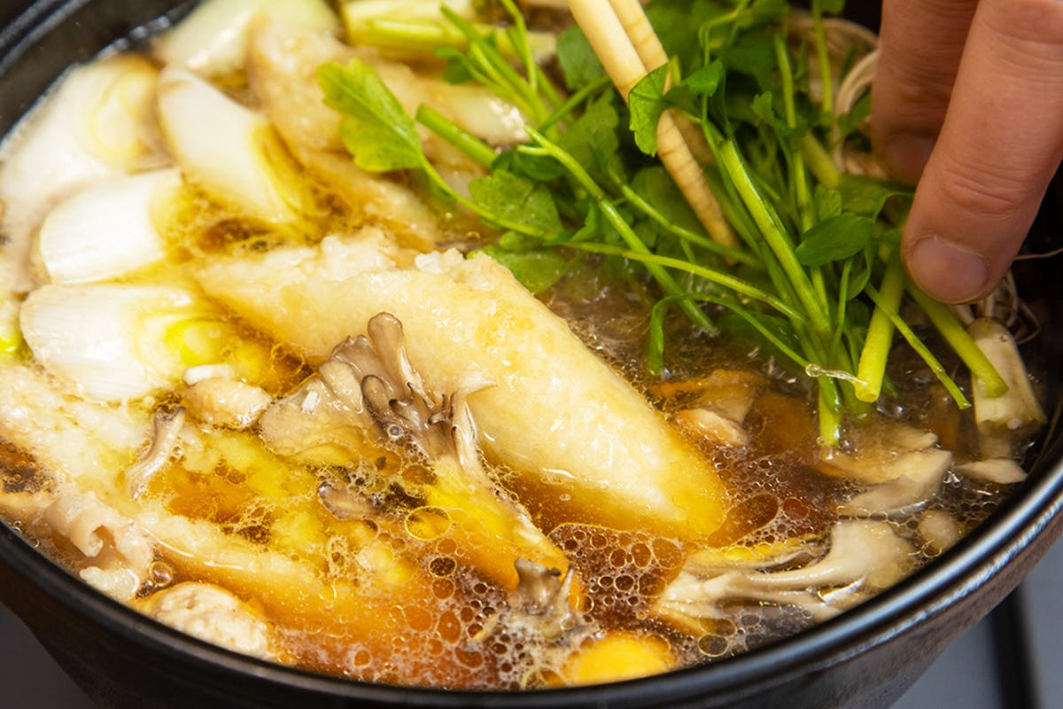 比内地鶏の鶏ガラとたっぷりの比内地鶏肉でとった贅沢すぎる極上の出汁で作ります。