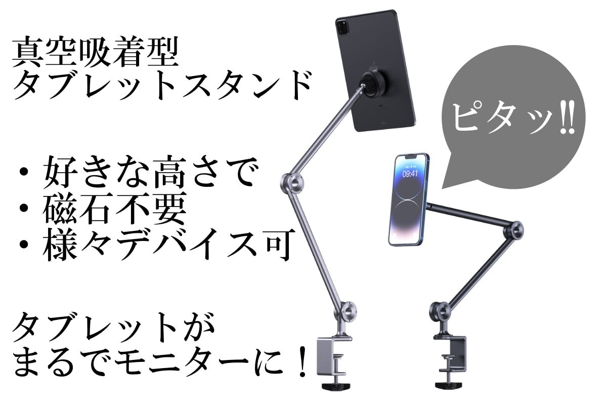 「K80」は真空の力でタブレットやスマホを脱着するタブレットスタンドです!