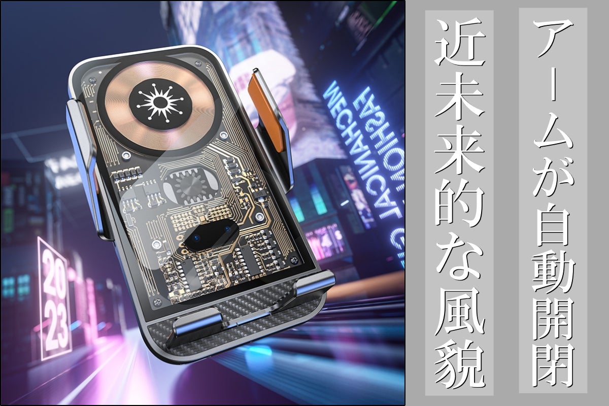 スマホを近づけると自動でアームが開閉し、スマホをしっかりと固定します。