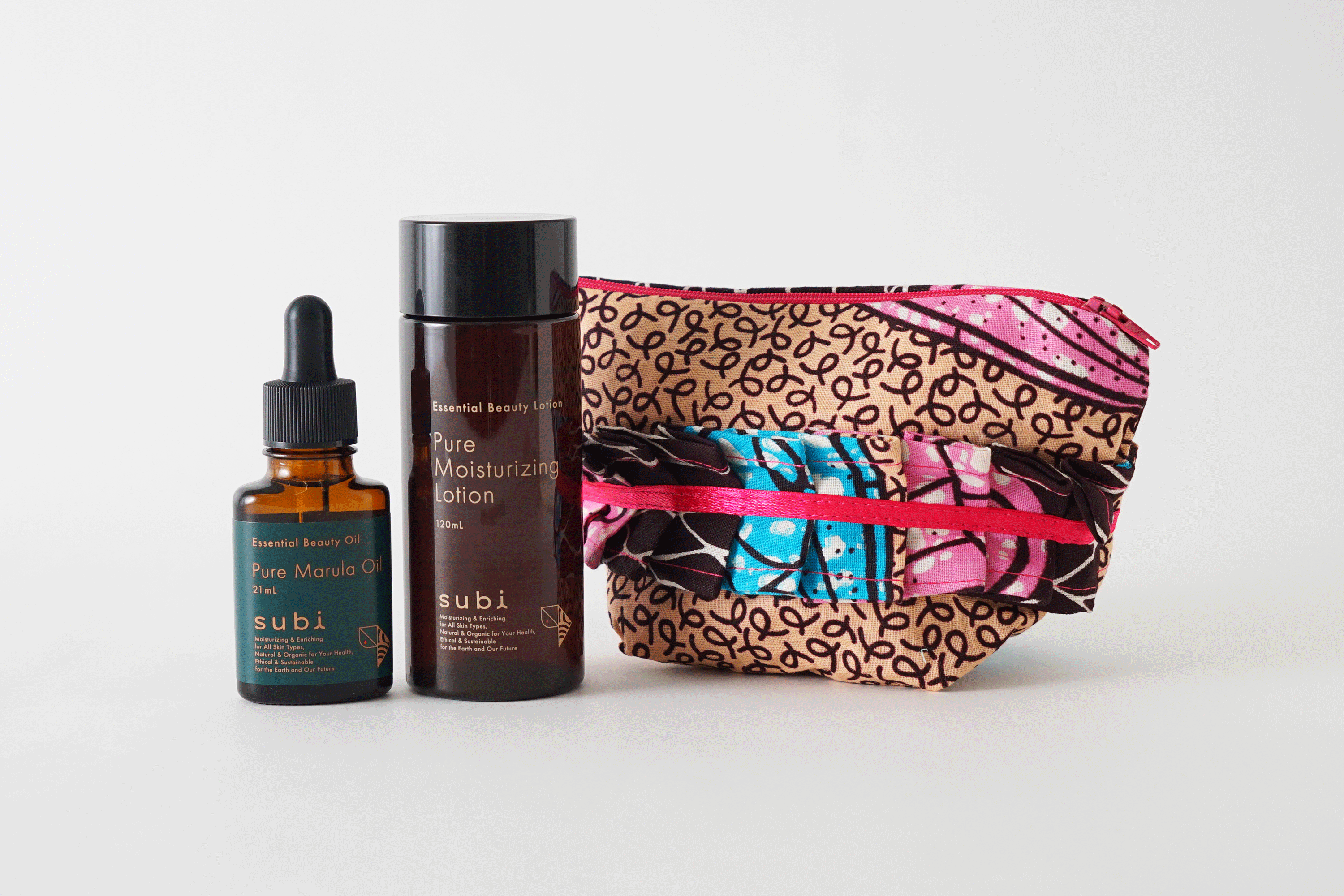 アフリカの植物オイルがスキンケア効果を発揮する時に、現地の人々の収入が向上し、原生林や固有植物が保護されます。そのマルチな可能性に魅了され、2021年1月私たちはVerde Marula社を設立し、アフリカの自然原料を贅沢に活用した「subi」スキンケアシリーズの開発を始めました。