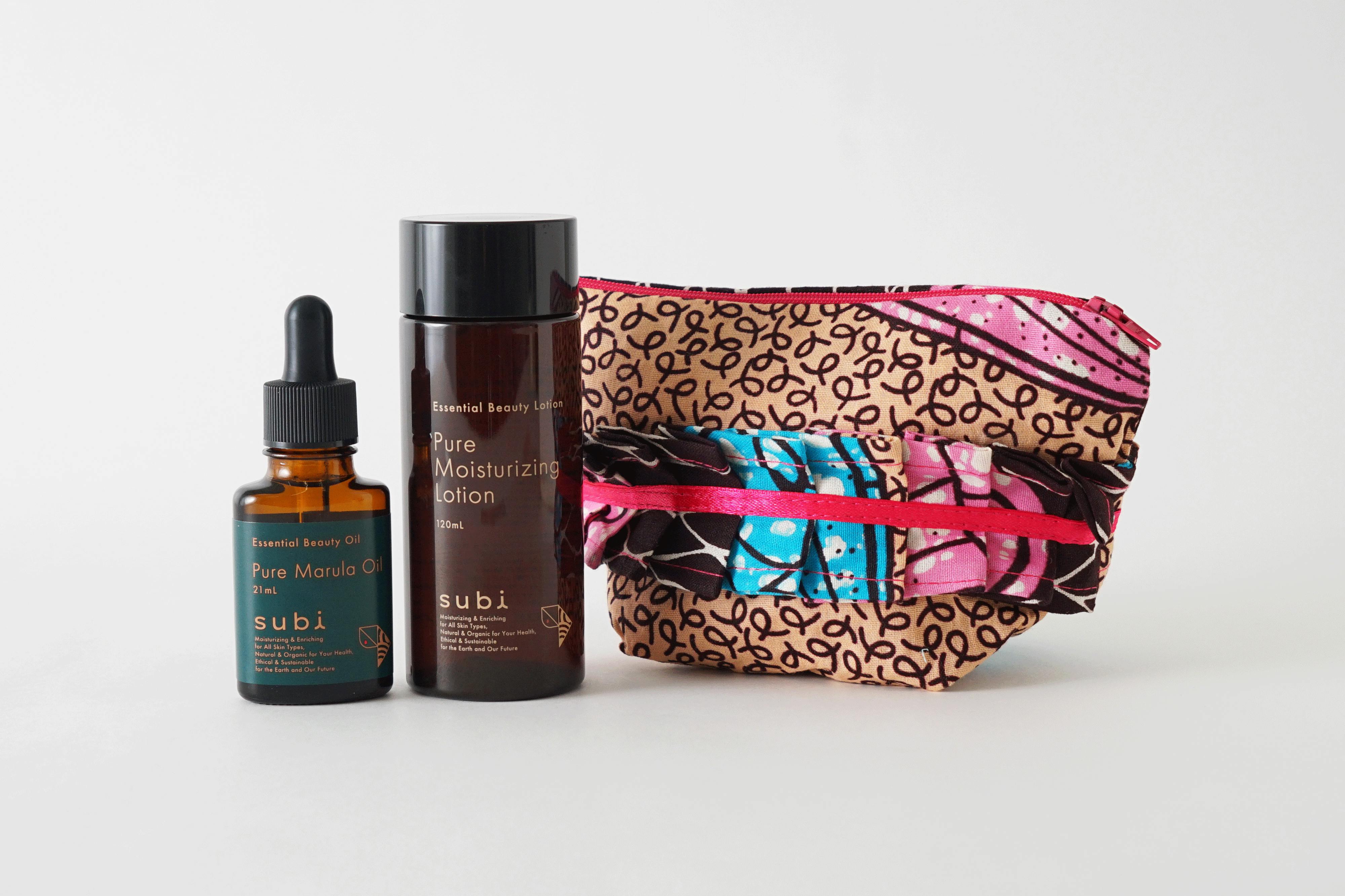 また、本企画の特別コラボレーションにより、アフリカ発のファッションブランドRICCIEVERYとアフリカ発のスキンケアブランドsubiのセットでお届けします。