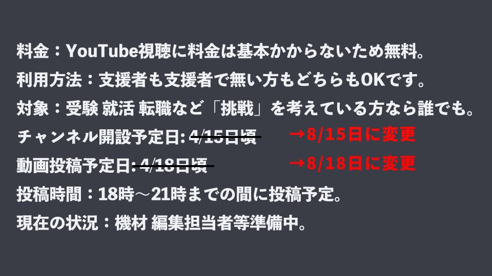 7月末〜8月末 支援会,YouTubeチャンネル準備期間