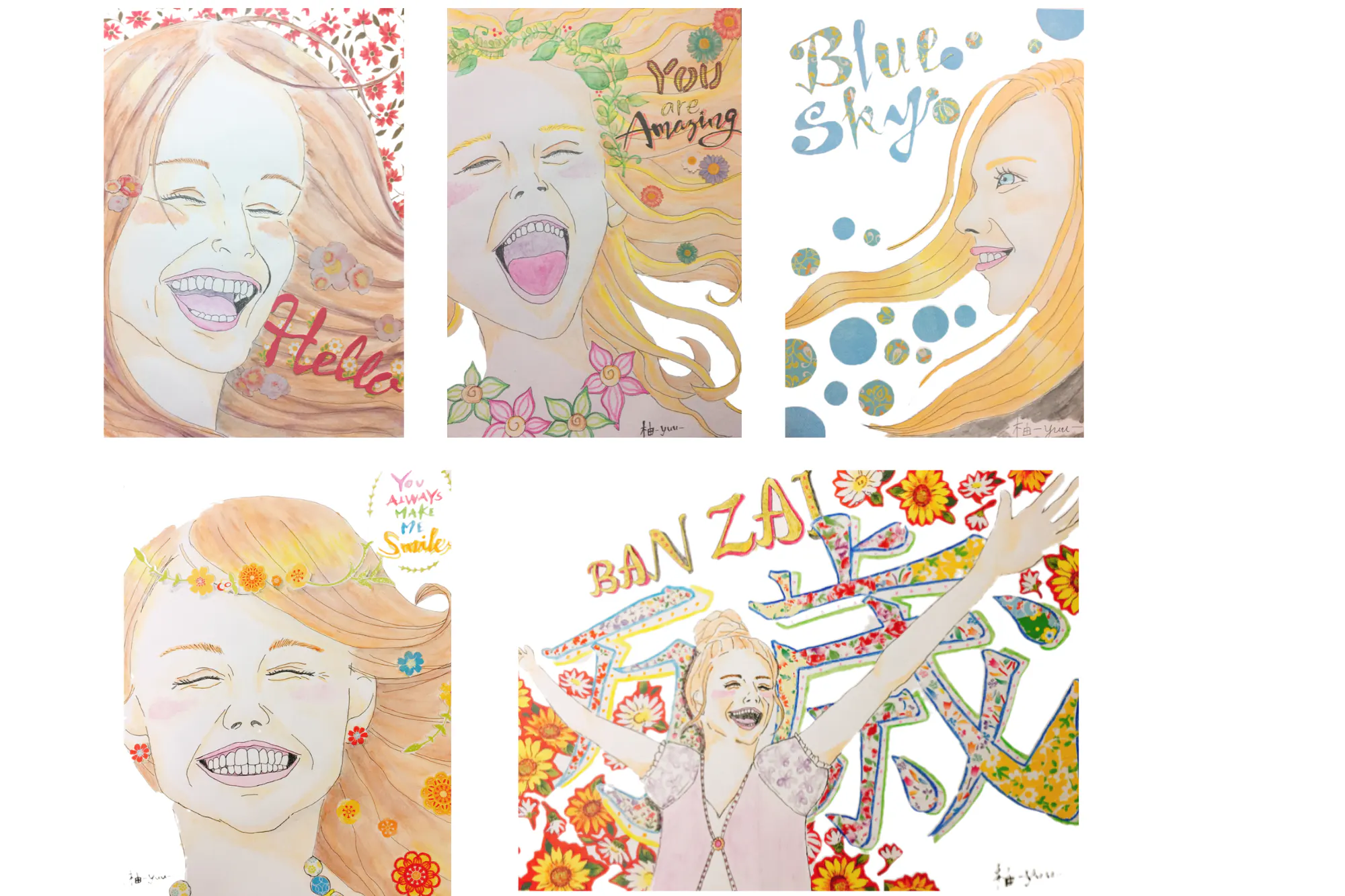 ・オリジナルポストカード 1枚(ユイコが手描きで仕上げたsmileポストカードで笑顔をお届け♪)