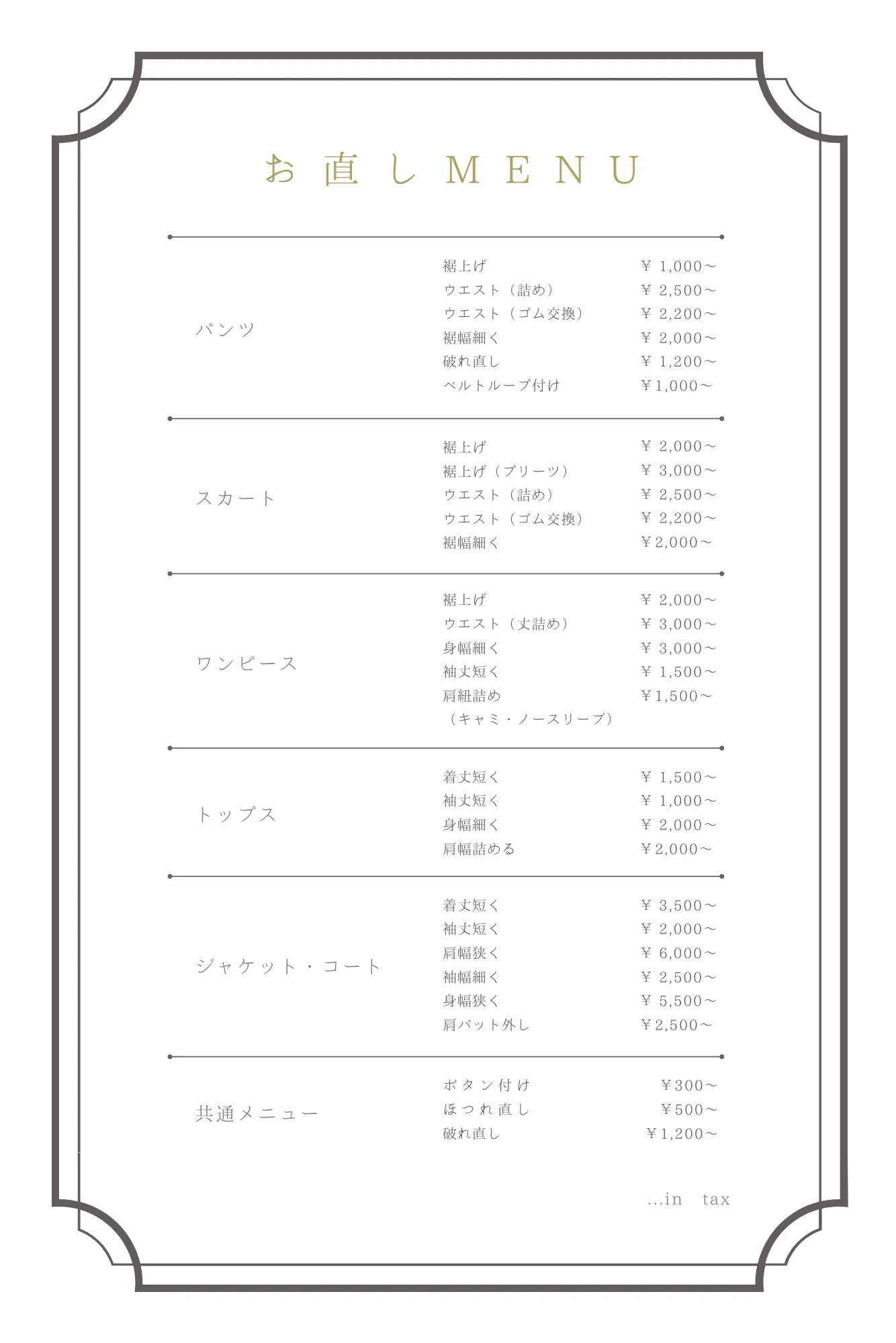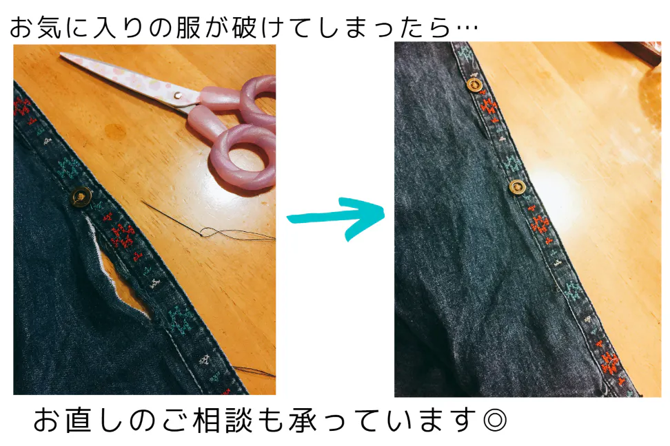 また、洋裁スキルを活かしてお客様の“こんな服欲しいな!”にも柔軟に対応いたします。