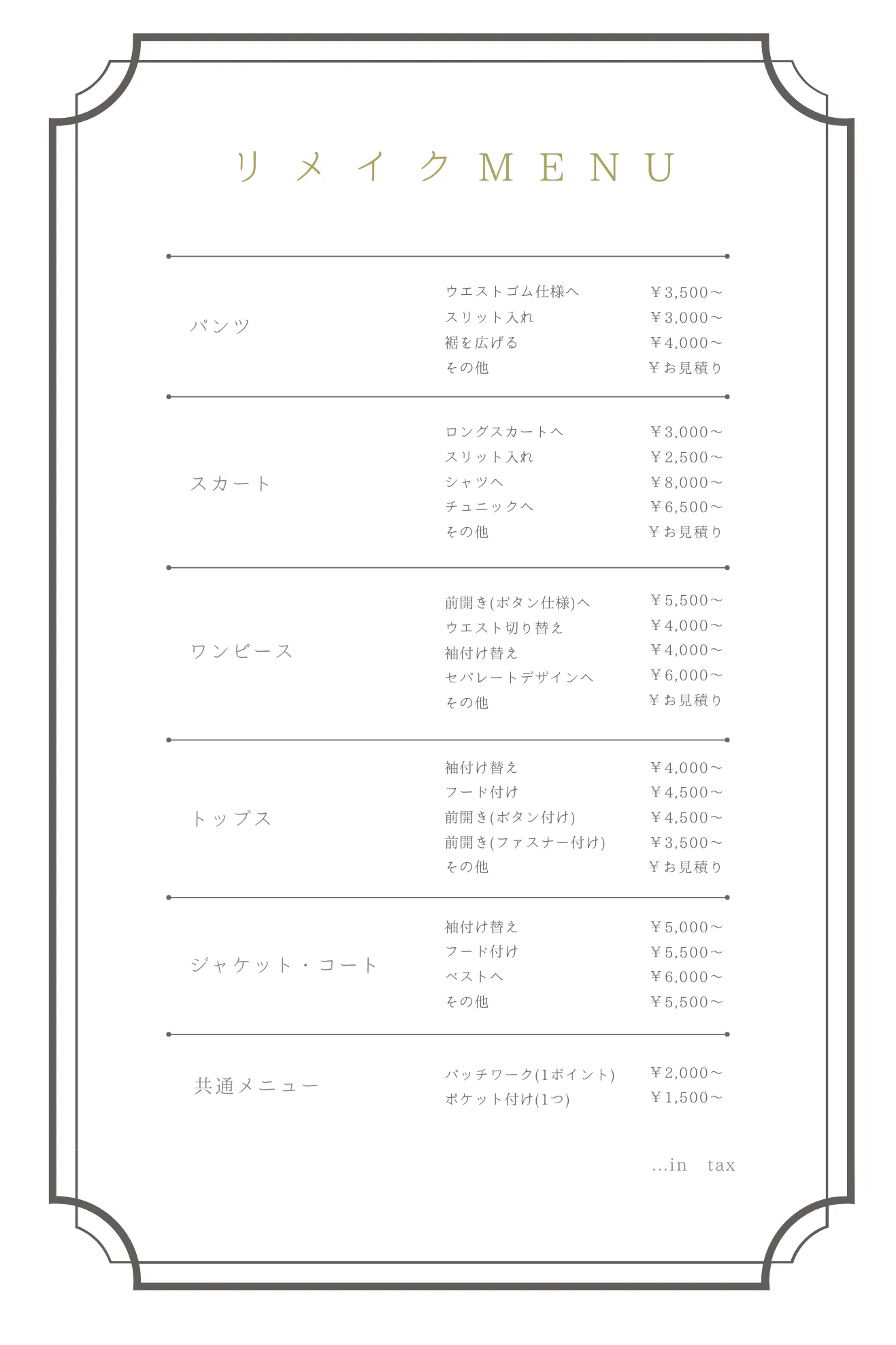 ・「好みのデザインに洋服がリメイクできて、コーディネートの幅が広がるのが嬉しい!!」