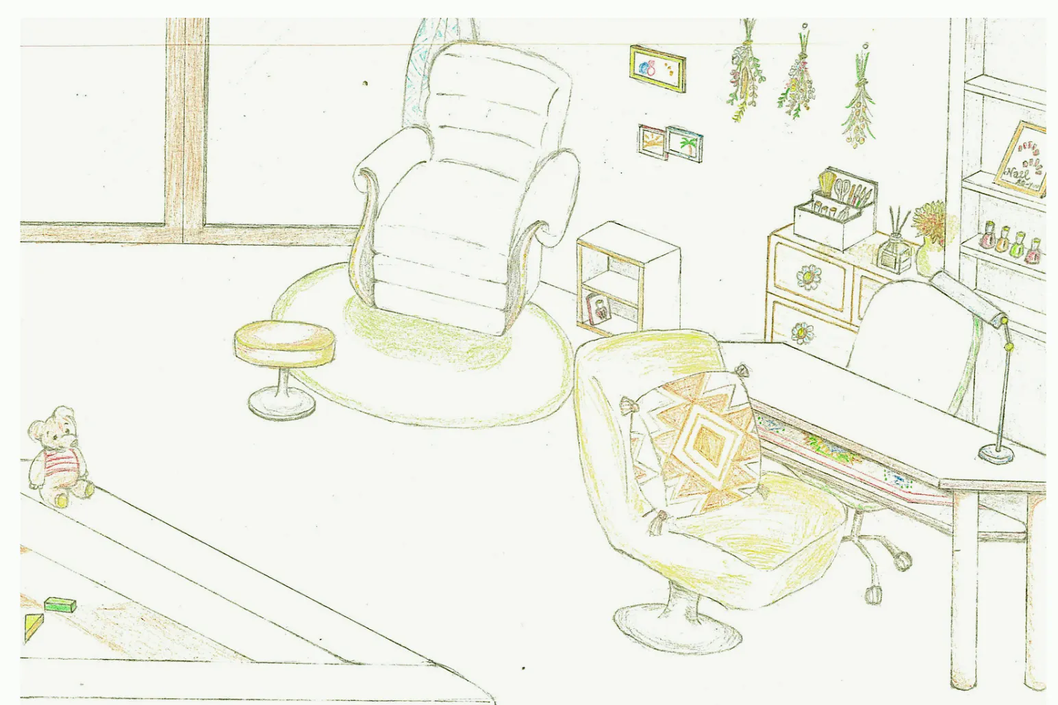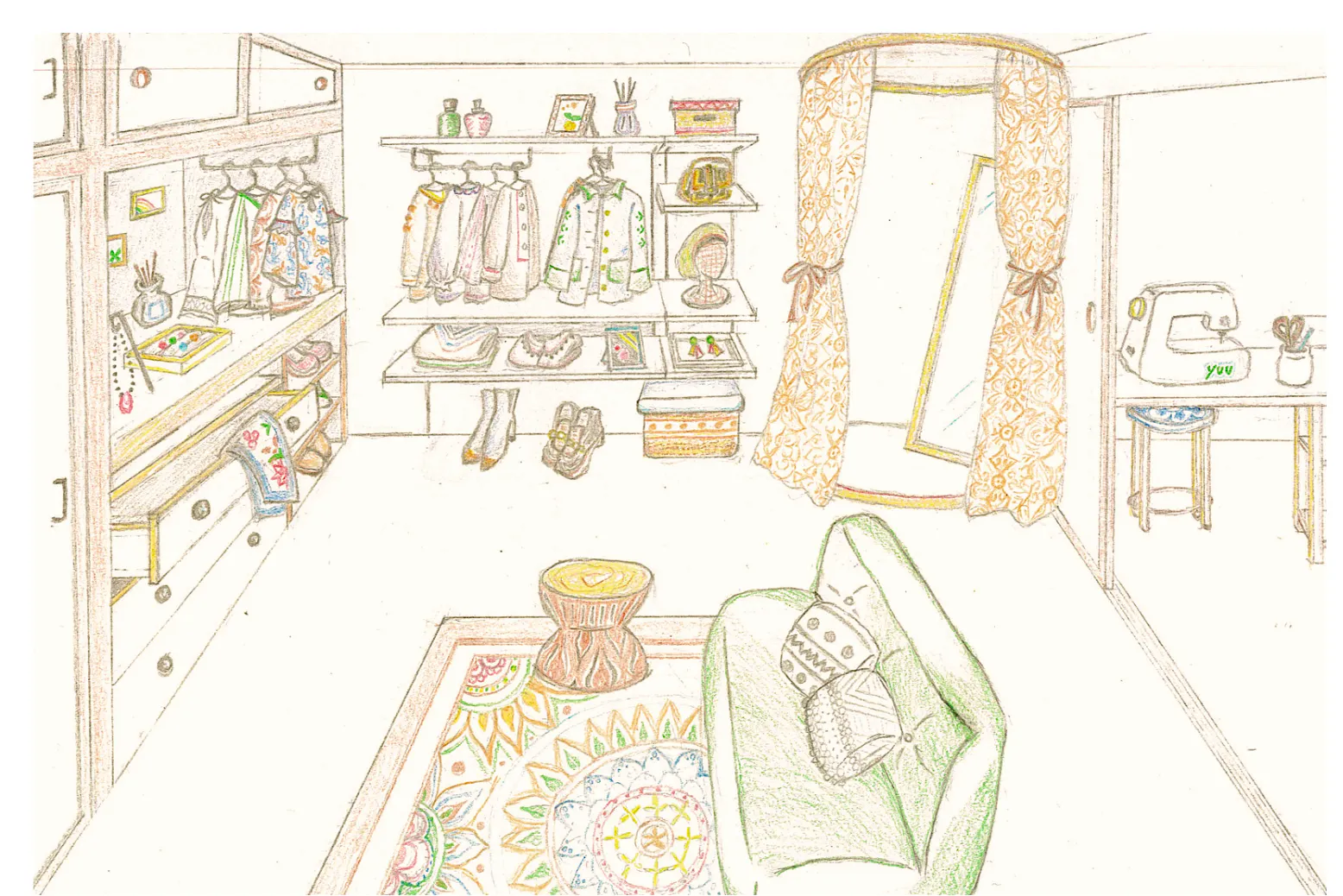 ファッションに興味関心があり、テレビ番組やマンガで好きなデザインの服を見つけるとラクガキ帳にイラストでメモをしていた。“私もおしゃれがしたい”そんな想いは胸の内に秘め、自分を表現する事が苦手な女の子だった。