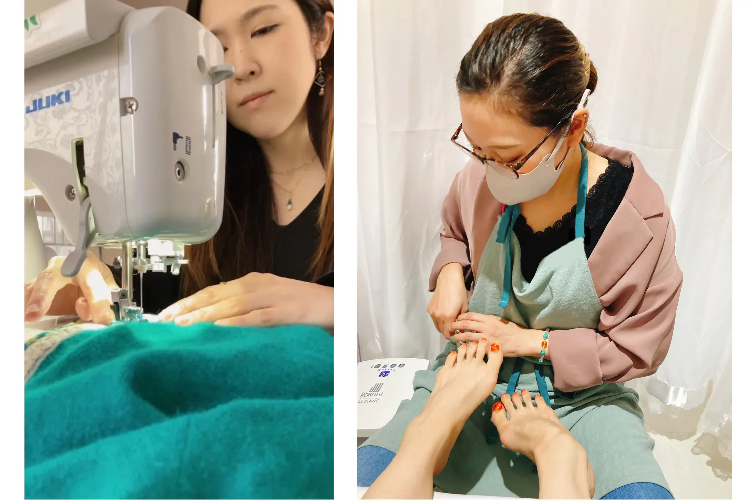 ユイコ(姉)は長年、管理栄養士として働いてきました。しかし洋服を作りたいという思いが強くなり、「服作りを通して表現する楽しさを広めよう!」と決意しハンドメイド作家の道へ転身。管理栄養士として働く傍らで身につけたミシンスキルを活かし、現在は洋服リメイクオーダーを受けて制作販売をしています。